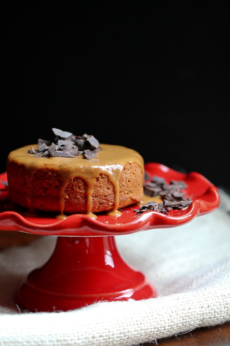Oh heavens, that cake looks just dreamy Brandi! I love the red pottery and you know I LOVE that peanut butter sauce ♥ What a wonderful combination. I love smaller cakes like this to share for dessert. Somehow it makes you feel like you’re eating more cause it’s the whole thing, dumb huh?