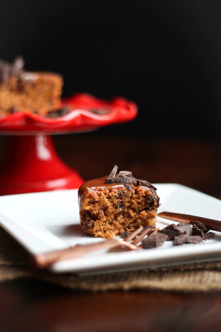 • For the glaze, just simply mix everything in a small cup until completely smooth. Spoon on top of the cake and smooth around with the back of the spoon and let drizzle down the sides. I then chopped up some dark chocolate pieces for garnish. I chose to do this over chocolate chips because it is a more elegant look. YUM.