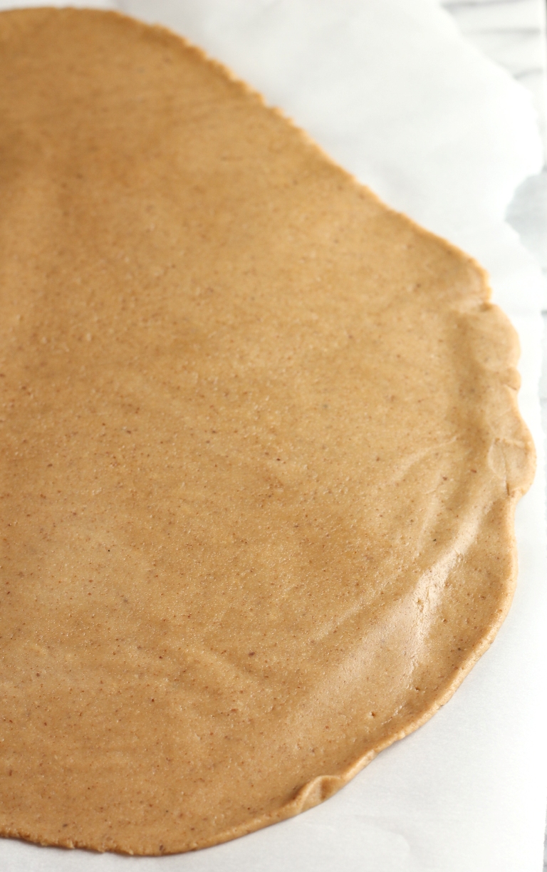 Pecan butter is crucial to use instead of just ground up pecans into a flour, because the pecan butter specifically is very smooth and light and creamy and acts as the oil here with the flours, as opposed to oil or butter. We are looking for an actual, workable gluten-ish pie dough, not just a crumbly type texture. The pecan butter also helps to bind the dough. Also, no other nut butters will work, so don’t even think about subbing. Pecan butter is naturally the oiliest of all nut butters, is much softer and lighter, as other butters are too stiff and dense. I tested both cashew and almond butter and they failed.