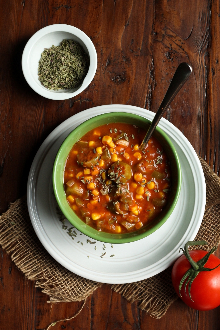 I am excited that I am allowed to share this amazing recipe, Creole Okra Corn Soup with you all today, thank you Kathy! My husband is from Louisiana, so he especially liked this soup. It is a great, quick meal to throw together. It was ready in less than an hour. The only thing I did differently was season with salt while cooking the onions and then adding the broth. I also threw in a good pinch of celery seeds with the other spices, since that really reminds me of other Louisiana style food we’ve had. Excellent recipe and would go great with some bread too!