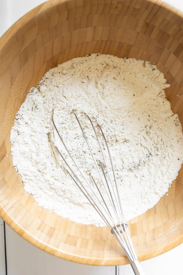 Step 2: To a large bowl, add the flour, baking powder, garlic powder, Italian seasoning and salt. Whisk very well until thoroughly blended.