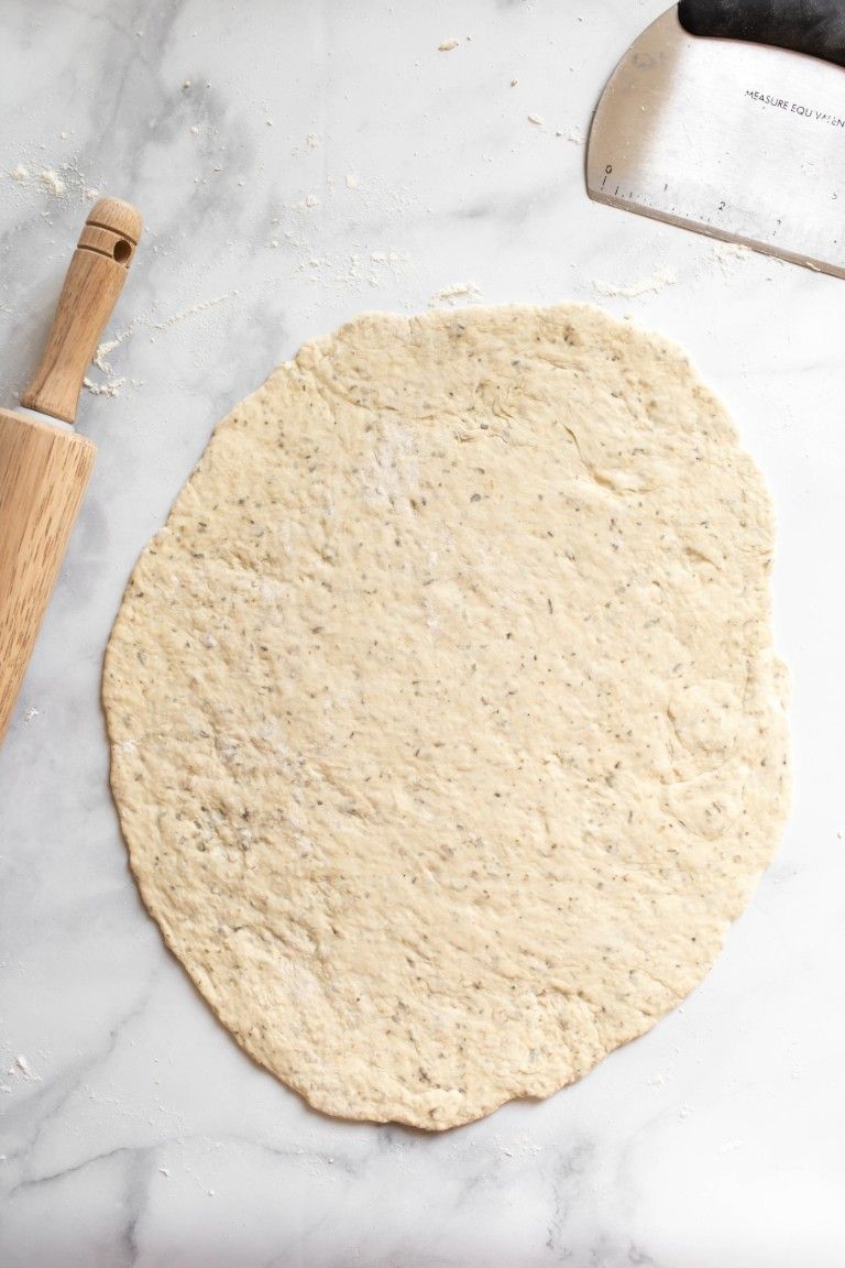 - Please keep in mind since this is a no-yeast pizza dough, it will not taste the same as a traditional light and airy, fluffy pizza crust, obviously. It is a thin and crispy crust that is perfect for quick pizza night. We all love it and I make it weekly, but it is not comparable to a yeasted pizza dough, so just keep that in mind. The dough is obviously more dense because of no yeast, so this is why we roll out the dough very thin, so it bakes up nice and crispy. This recipe is not meant to be used for a fluffy pizza crust.