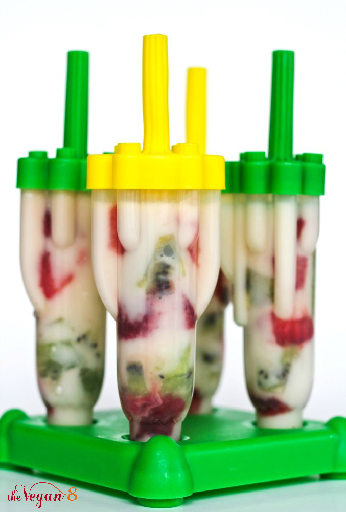 The apple juice keeps it light, so the fruit can shine through and not feel too heavy from using all coconut milk. If you wanted to use all apple juice, that would work too. Obviously, that will make them more icy and less creamy.
