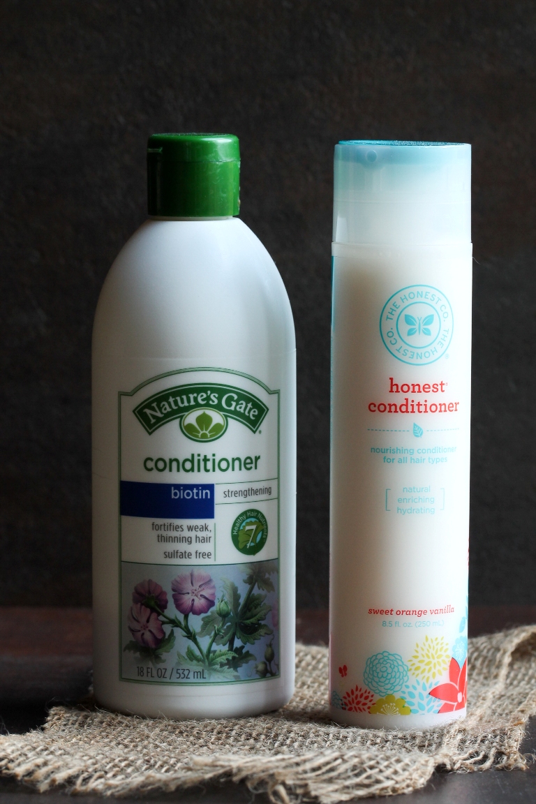 Nature’s Gate Biotin Conditioner and The Honest Company for more budget-friendly conditioners