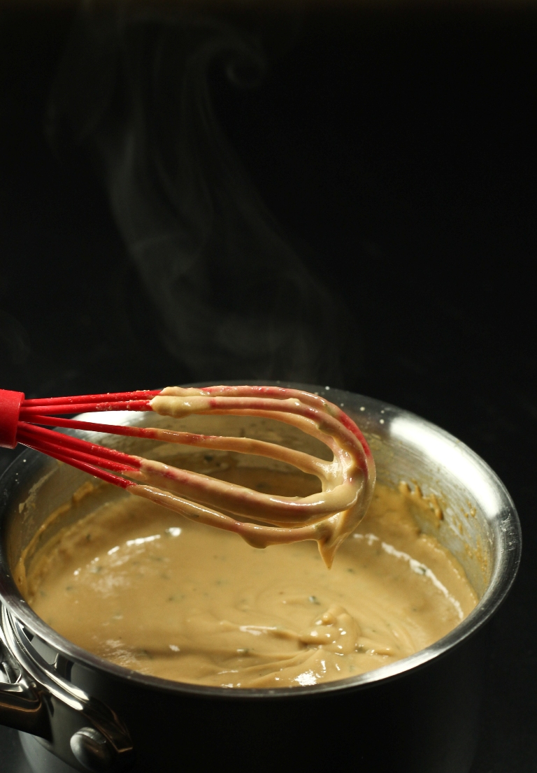 So, how to recreate that creamy, thick texture without so much oil? Well, I used a combo of “lite” canned coconut milk (full-fat will make it taste like coconut, which we don’t want!) and cornstarch and heated it to thicken it. Worked like a charm. It’s much less fattening, yet totally delicious.