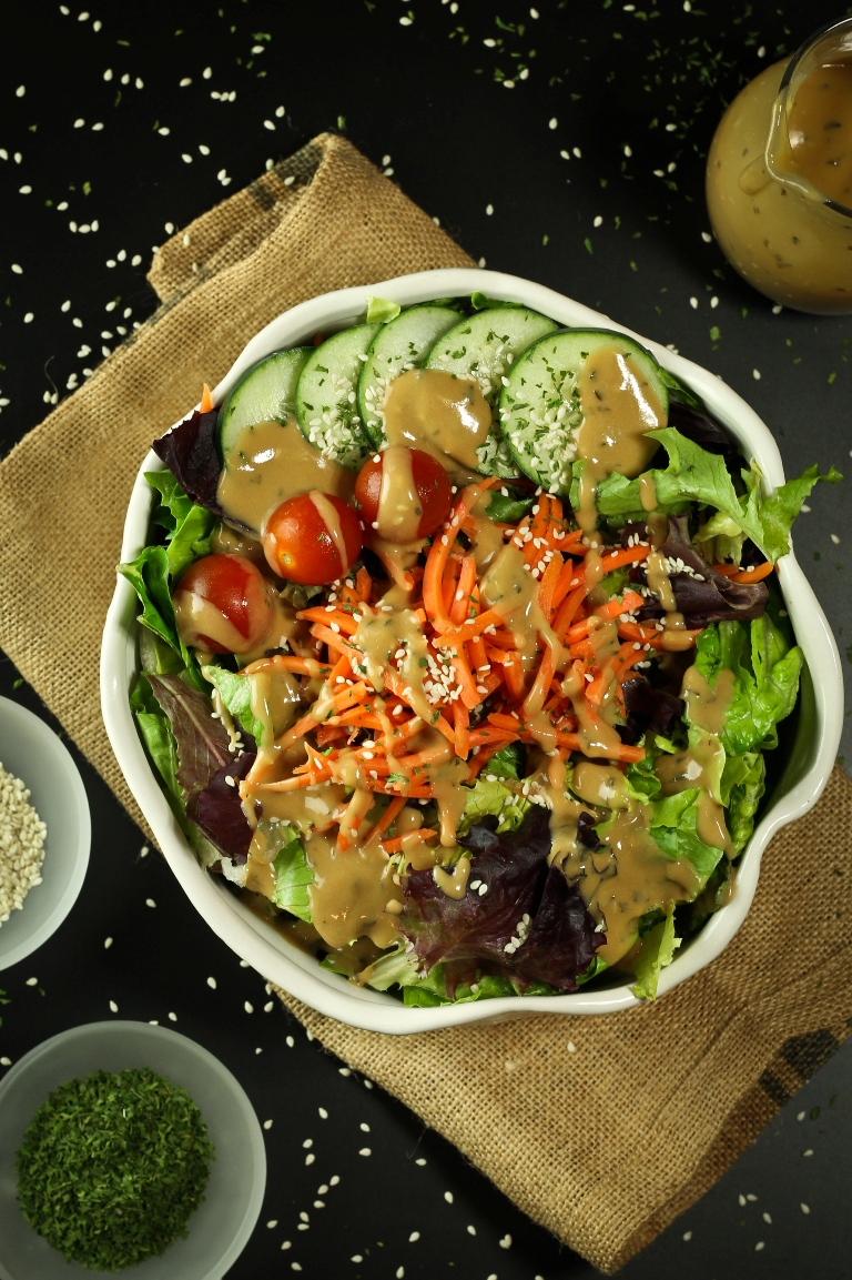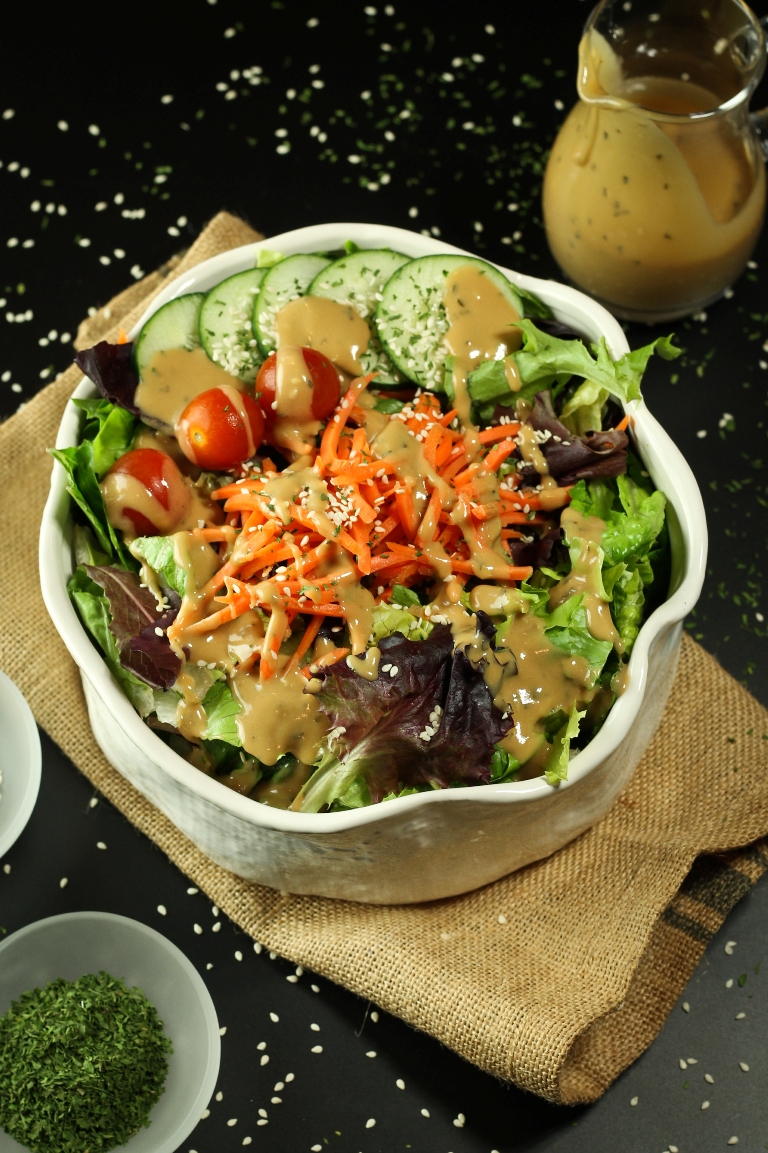Its funny you post a salad dressing recipe because I have been thinking that I need to eat more salads but I just need to find a good salad dressing. I was looking for a fat free salad dressing because if I am going to have it daily I definitely would want it fat free, however I certainly don’t mind having something like this occasionally. Only you can make a salad looks so enticing. Hahahaha. I love the way the dressing looks so creamy and beautiful. Only thing I am concerned about is the tamari. Do you think there is any possible sub for the tamari? I am guessing probably not π But in any case it looks gorgeous and it is making me want to eat salad even more now.
