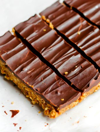 These Vegan No-Bake Mint Chocolate Chip Bars taste so much like Girl Scout Thin Mint cookies, but in bar form. Made with ONLY 7 ingredients, ready in 10 minutes and are dairy-free, gluten-free and oil-free. What goes fabulous with chocolate? Peanut butter…cherries…orange…and ESPECIALLY mint. I used to love eating those girl scout thin mint cookies,…