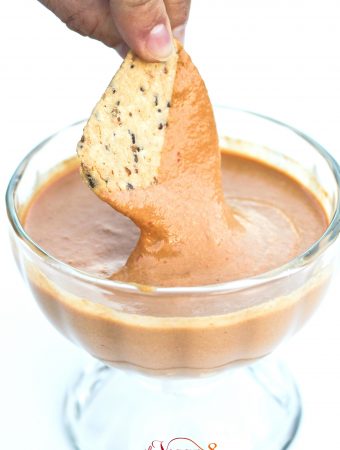 An amazing Vegan Cheez Whiz that requires just 5 minutes to throw together. No cooking or standing over the stove. This goes great with chips, burritos or even on broccoli!