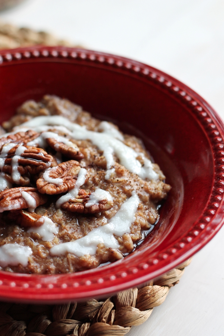 Cinnamon Roll Spice Oatmeal What is Thanksgiving morning without a cinnamon roll? Well, forget the rolling and yeast setup time and just get to a hot bowl of oatmeal instead.