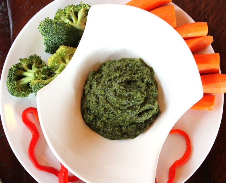 Spinach Pea Pesto I love to always have a great dip served alongside veggies for guests. This one is perfect and everbody always loves this pesto.