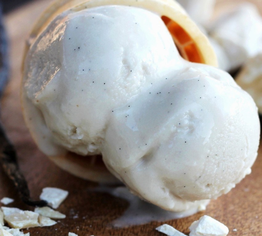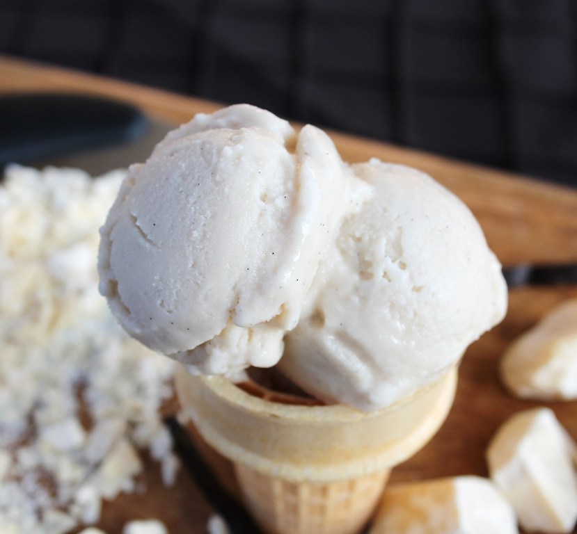 Dreamy creamy Vegan White Chocolate Vanilla Bean Ice Cream!