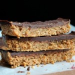 Gently melt the chocolate to your preferred method and spread over the top of the dough evenly and quickly since the cold bars will start to harden the chocolate. Place back in the fridge to harden the chocolate for about 15 minutes. Remove and very carefully, with a fine sharp knife, cut into 7 bars while they are still in the pan, as they will retain their shape better this way. If they are too hard to cut, let them thaw 5 minutes. Don't leave them at room temperature long though, as they will soften too much. Place in the freezer this time to harden for an hour, then you can remove them from the pan and wrap them individually in plastic wrap, if you desire. Keep them stored in the freezer, and they will retain their crunch that way. They become more firm overnight. You could also keep them in the fridge, but they will be less crunchy.